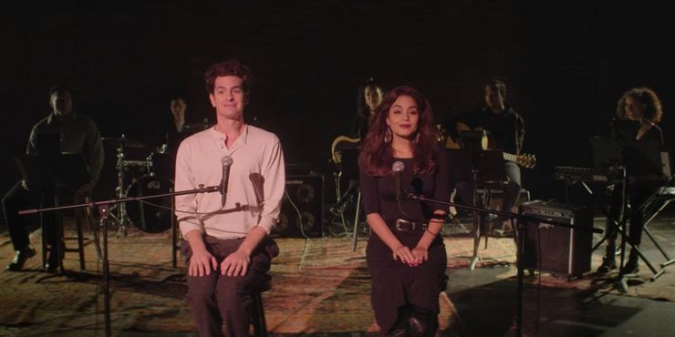 The supporting cast does their share of the heavy lifting too. Garfield is joined by the aforementioned Hudgens and by Joshua Henry for the stage sequences; and both were chosen for their theatre chops (Henry notably starred as Aaron Burr in the Los Angeles production of Hamilton, amongst others). Both get the opportunity to show off their chops, with their incredible singing voices taking the lead for their performances; but they also appear in ensemble scenes throughout the dramatised sections as the narrative moves toward the workshop of Superbia.