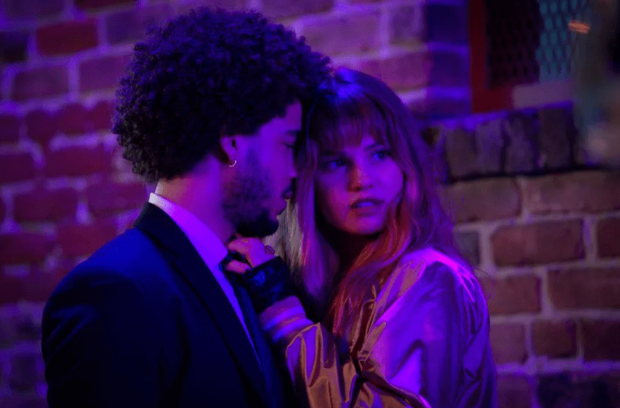 The feeling is enhanced by both the soundtrack and costuming; with the former consisting of original tracks created by a collaboration between Ian Hultquist and Drum & Lace; and a considerable number of modern hip-hop tracks from the likes of Saweetie, Rico Nasty and Wang Chung. It’s a slick and smooth soundtrack that seamlessly moves into the background as required, punctuating the dialogue as our central trio drive around town, and storming into the forefront as the action takes over and the dialogue eases off. Costuming is on point as well; with Benny’s ill-fitting black suit and white trainers presenting the semi-professional look one would expect of a teenage driver, contrasted by Zoe and Blair’s clubland, socialite attire; both looks being both mirrored and adapted by other characters in the film; with the vampires all sharply dressed, and the majority of the other human characters adapting a more street-level style.